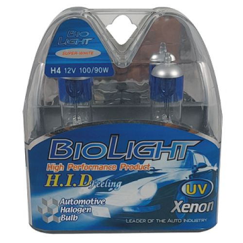 H4 12V 100/90W B4 Super White Plus 200 7000K Biolight Halogen Globes Twin Pack