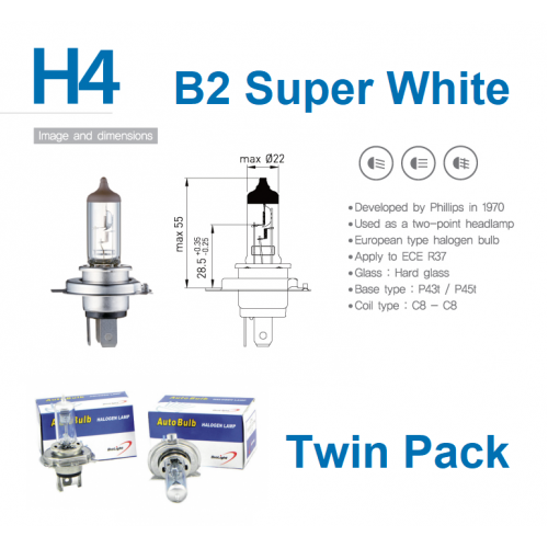 Seen it cheaper? We'll beat it! - Just contact us - H4 12V 100/90W B4 Super White Plus 200 7000K Bi..