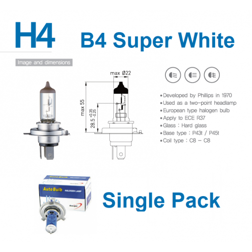 Description: Single Pack B4 Biolight Super White Plus 6000K